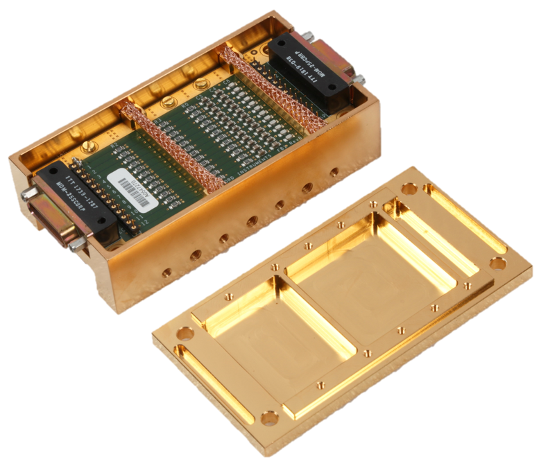 このフィルターは、金メッキ銅シャーシにRFガスケットを装着し、フィルターPCB基板の遮蔽と放熱を行う構造となっています。