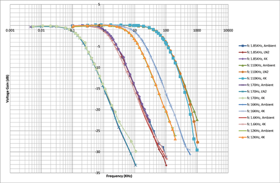 シールドされた測定ケーブルに加えて、100mK以下までの極低温で取り付けることができる多段ローパスフィルタがあります。このフィルタは、4つの異なるカットオフ周波数のフィルタオプションがあり、24本の信号線をフィルタする機能があります。また、フィルタPCBのシールドおよび排熱のため、RFガスケットを備えたAuメッキのCuシャーシで構成されています。フィルタ部品は慎重に選択された表面実装部品で、周囲温度から100mK以下の温度範囲で非常に優れた安定性を実現することができます。