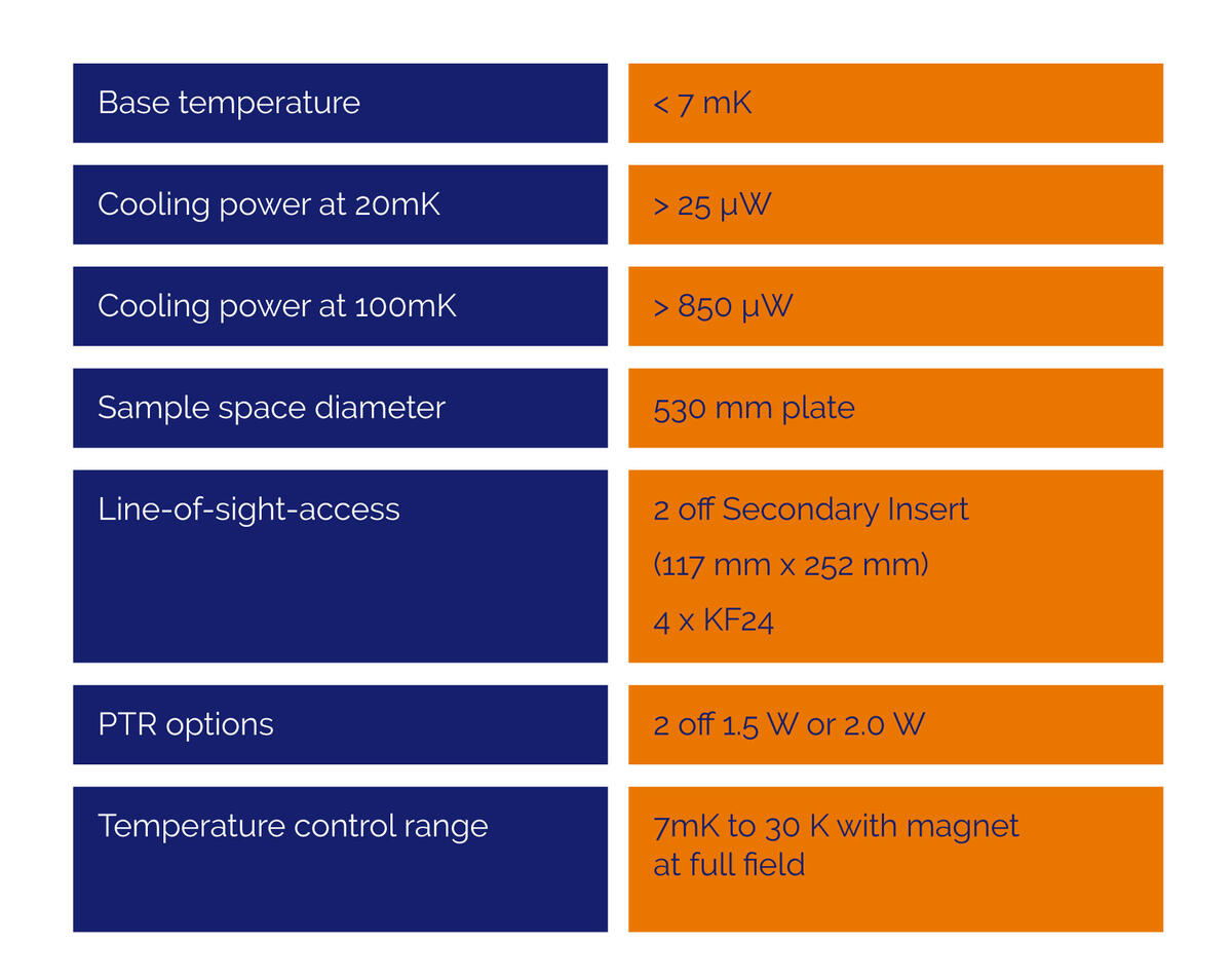 標準的なアクセスポートに加えて、二次インサートは、DC配線、同軸配線、低温エレクトロニクスを含む、実験用のフルセットを収容することが可能です。